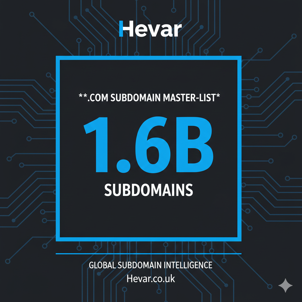 While root domains show the surface, subdomains reveal the infrastructure. The Hevar .com Subdomain Intelligence List contains an staggering 1,688,258,824 unique records, mapping the hidden architecture of the .com ecosystem.